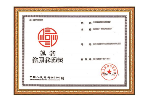 机构信用代码证